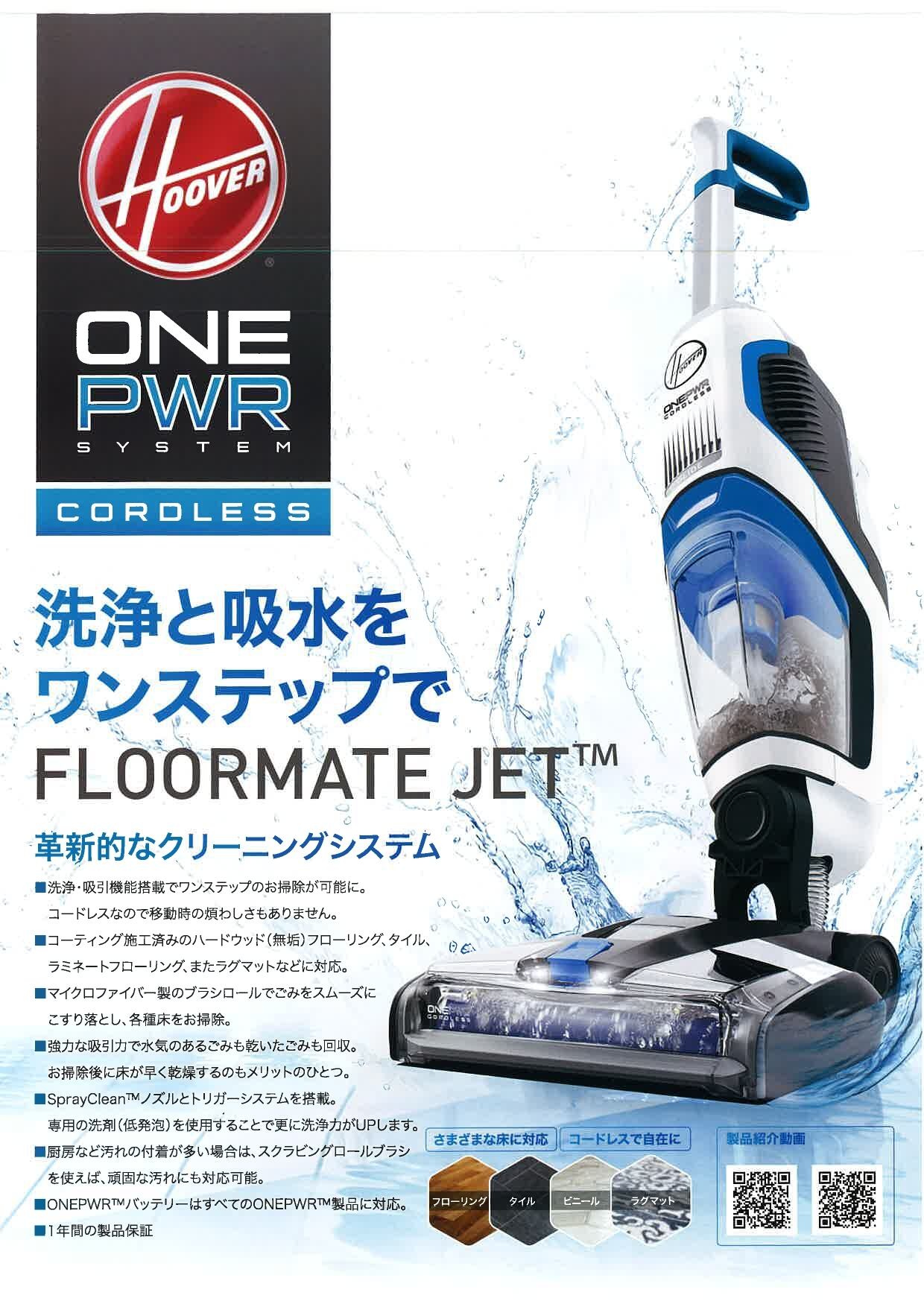 フロアメイト・ジェットは、高性能かつ革新的なHoover® ONEPWR™コードレスクリーニングシリーズのひとつです。同じシリーズのすべての製品と互換性のある強力なリチウムイオンバッテリーを搭載しており、屋内外をパワフルに掃除することができます。Hoover® ONEPWR™で、ハードフロア、カーペット、家具の布地、パティオなどを、コードに邪魔されることなくしっかりお掃除しましょう。
